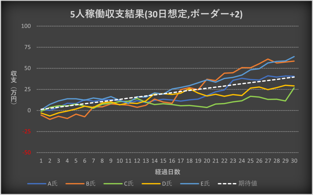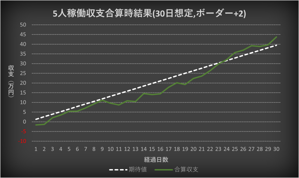・5人の収支を合算した場合の期待値との比較