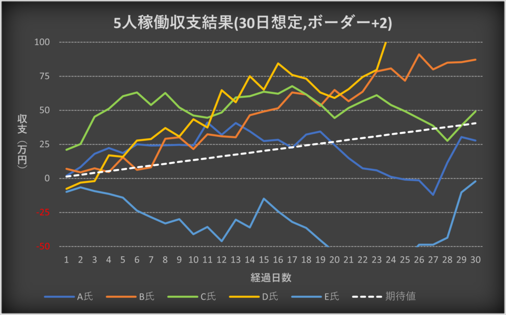 ・5人の収支を合算した場合の期待値との比較