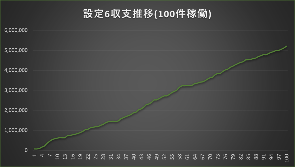 | 収支 | -5,038,220円 | -2,514,540円 | 178,280円 | 4,809,240円 | 8,832,360円 | 13,793,720円 |