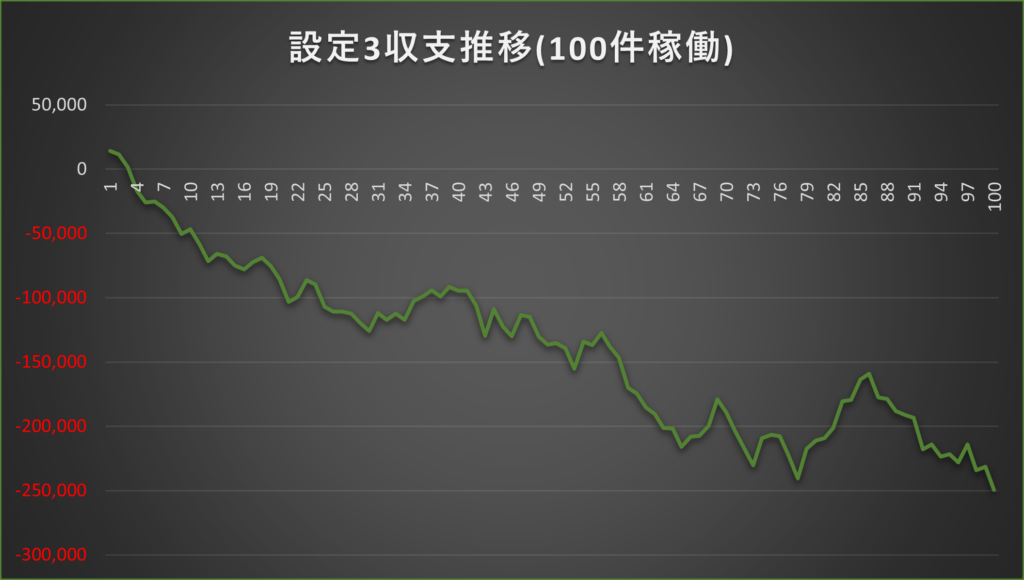 稼働回数100件あたりの収支推移(通常時1万回転)