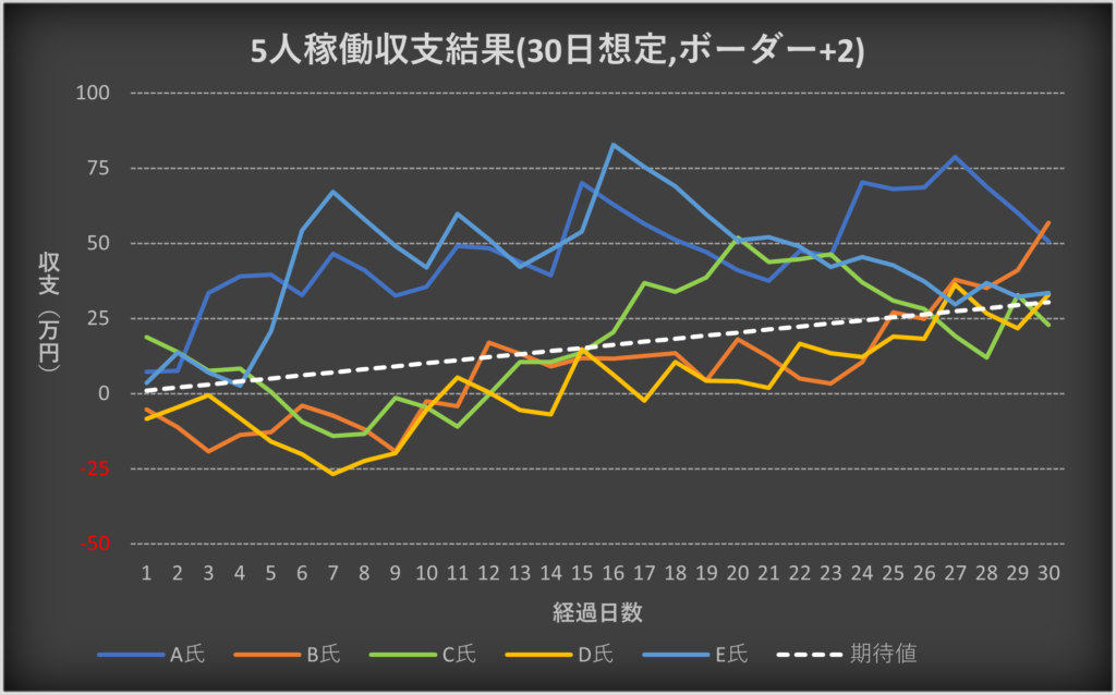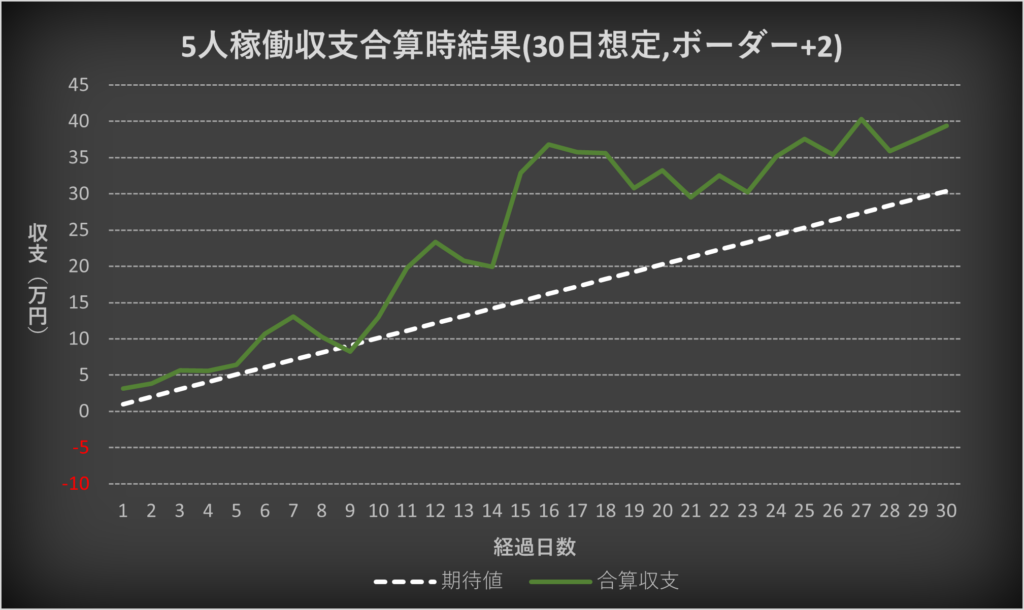 ・5人の収支を合算した場合の期待値との比較