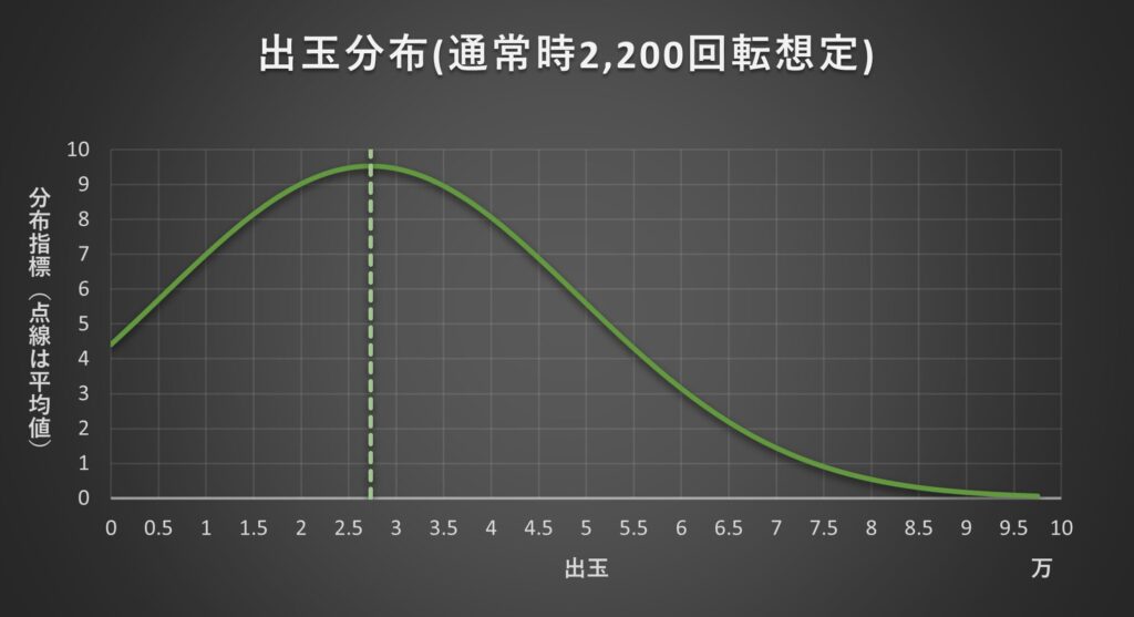 ・一日の払い出し出玉の分布です。縦軸の分布指標を基に他機種と出玉性能のバラつきを比較することができます。