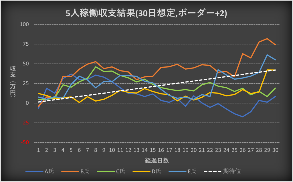 ・5人の収支を合算した場合の期待値との比較
