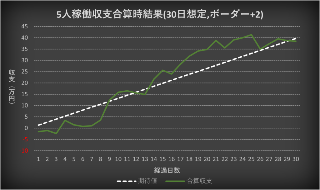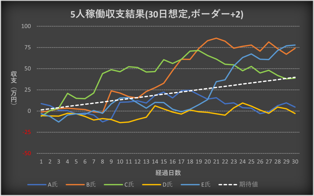 ・5人の収支を合算した場合の期待値との比較