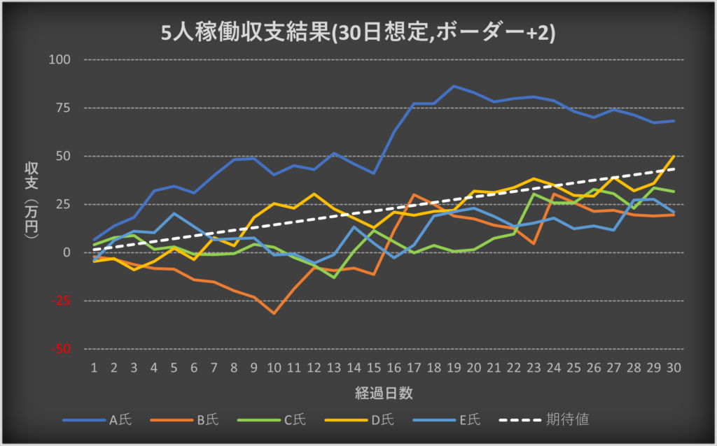 ・5人の収支を合算した場合の期待値との比較