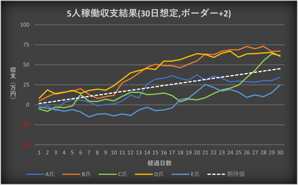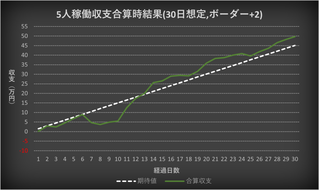 ・5人の収支を合算した場合の期待値との比較