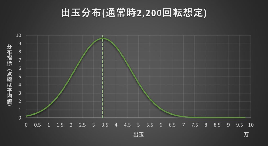 - 通常回転2,200回転は、開店から閉店一時間前まで遊技することを想定した回転数です。
